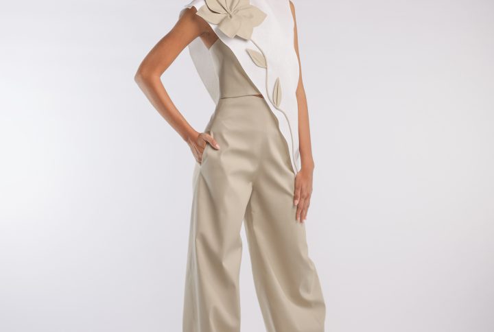 Vestido escote V falda de tachones